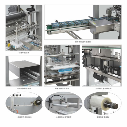2.更换少量模具配件即可包装不同尺寸的物品,采用全新设计的快速调节结构,使更换模具配件更加简单快捷,将传统机四小时的更换模具时间缩短为只需现在30分钟。